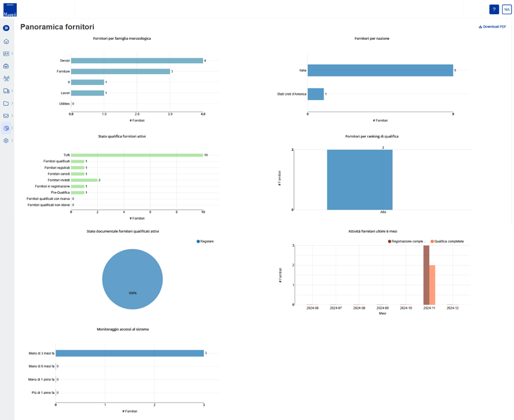 - Attività fornitori ultimi 6 mesi – monitoraggio del numero dei fornitori registrati e qualificati negli ultimi 6 mesi;