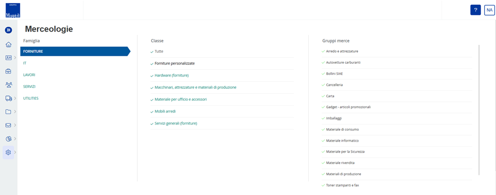 Figura 26. Portale Maggioli: Configurazioni - Categorie merceologiche